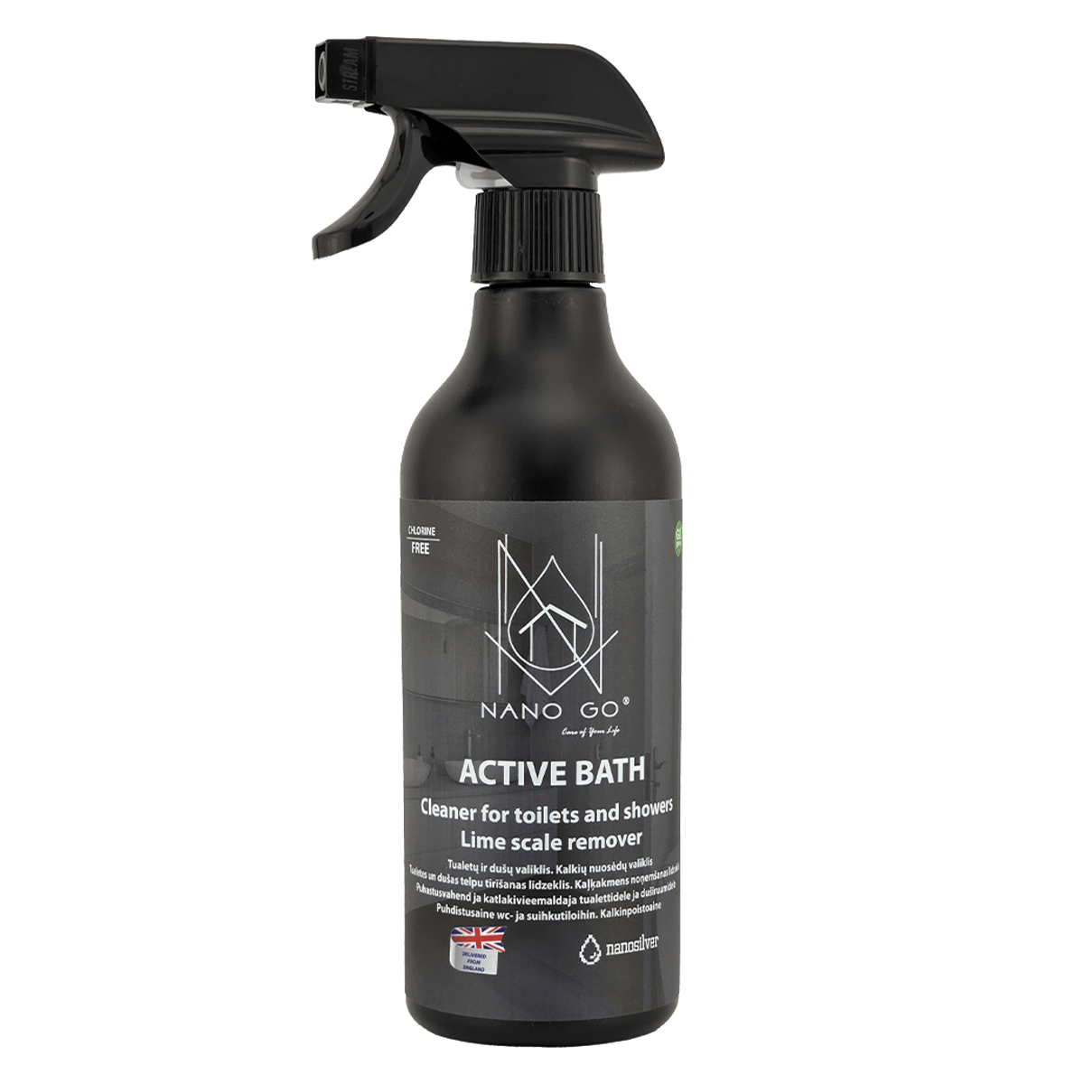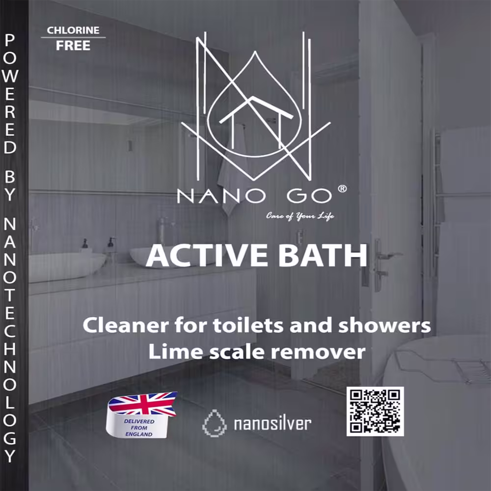 ACTIVE BATH to najlepiej sprzedający się środek do czyszczenia łazienki NANO GO – usuwa kamień, resztki mydła i plamy z rdzy z ceramiki, szkła i powierzchni akrylowych.