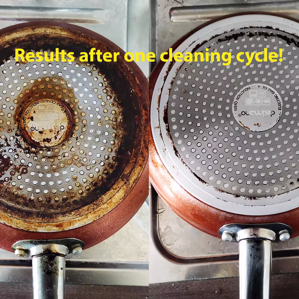 Formuła zawiera środki odkamieniające pomagające usunąć osady wapienne. Eliminuje uporczywe zapachy przypalonego oleju i tłuszczu.
